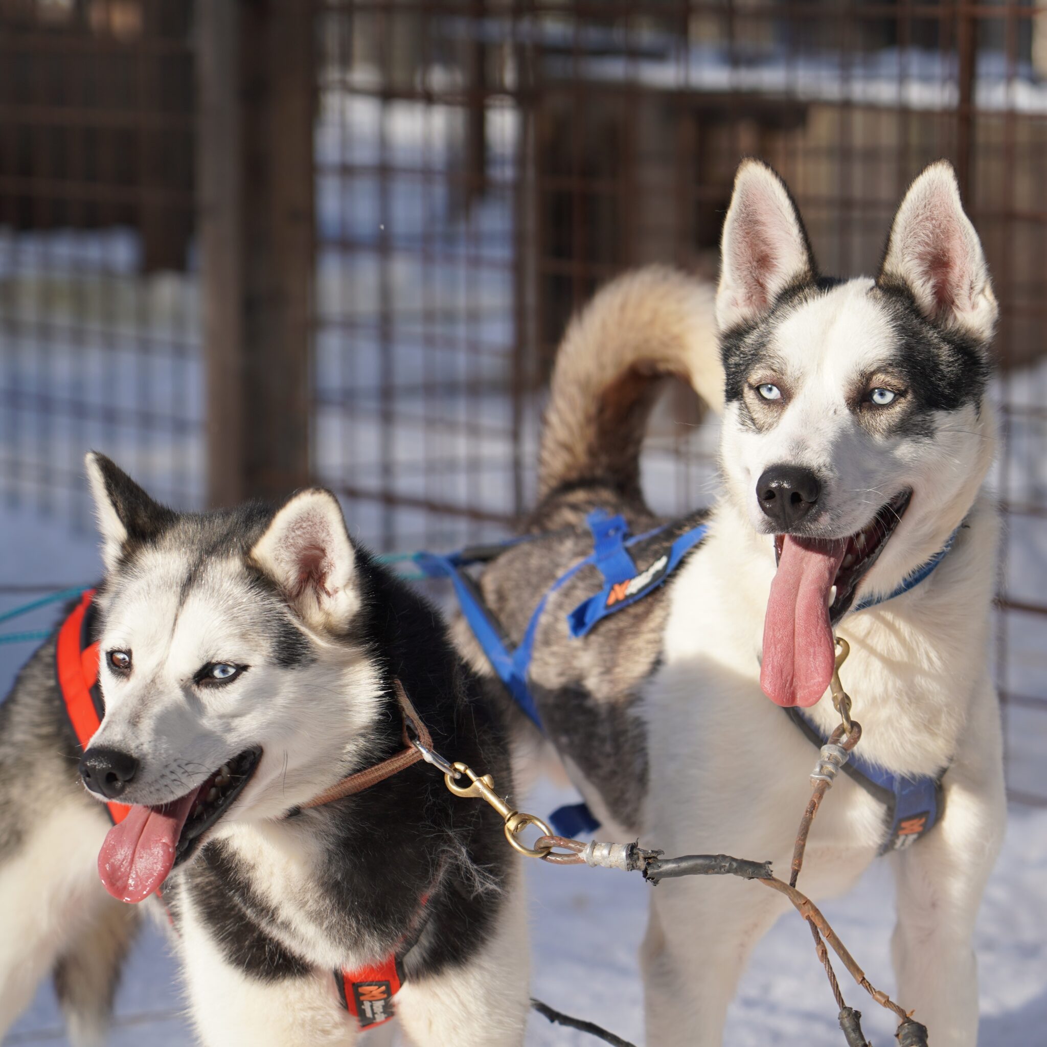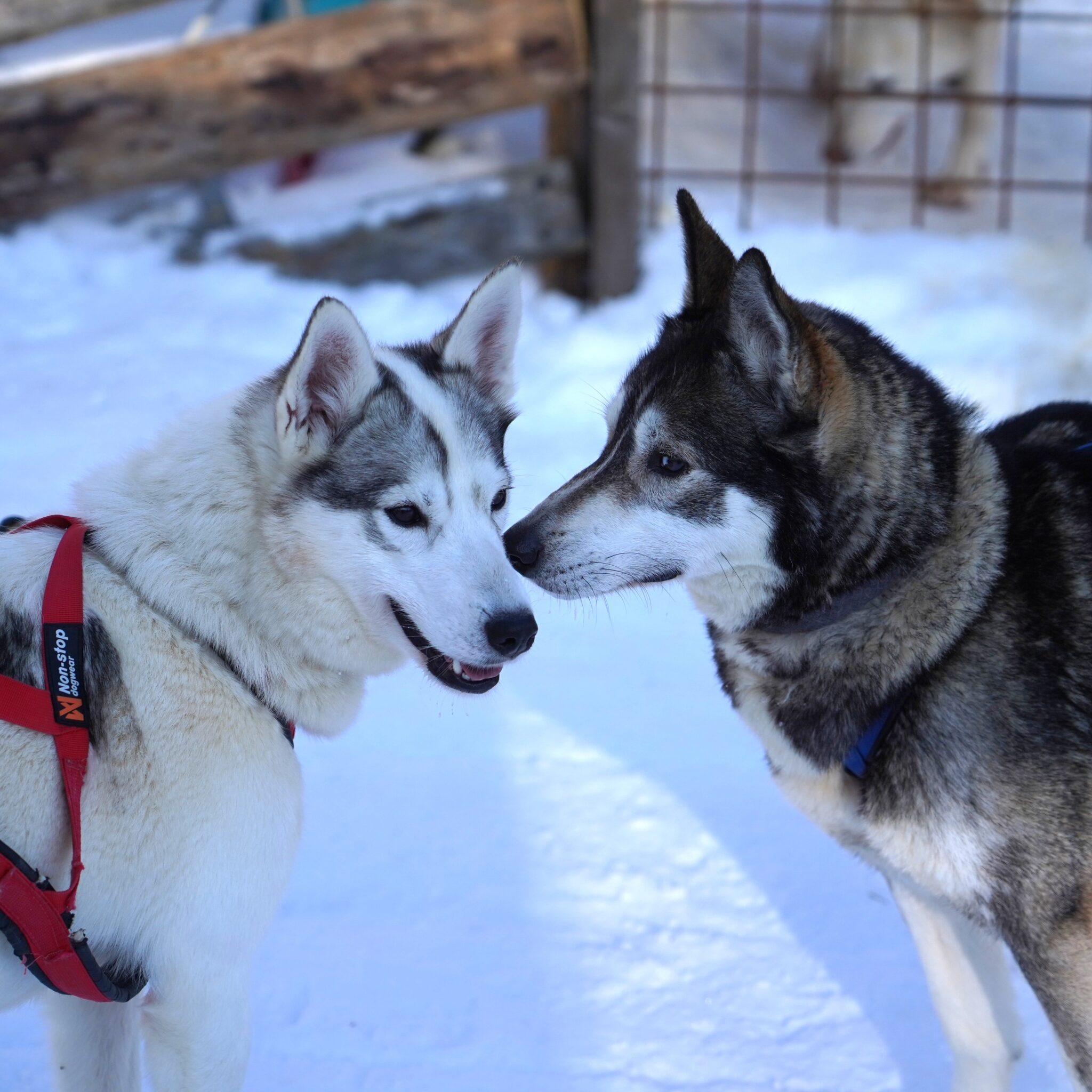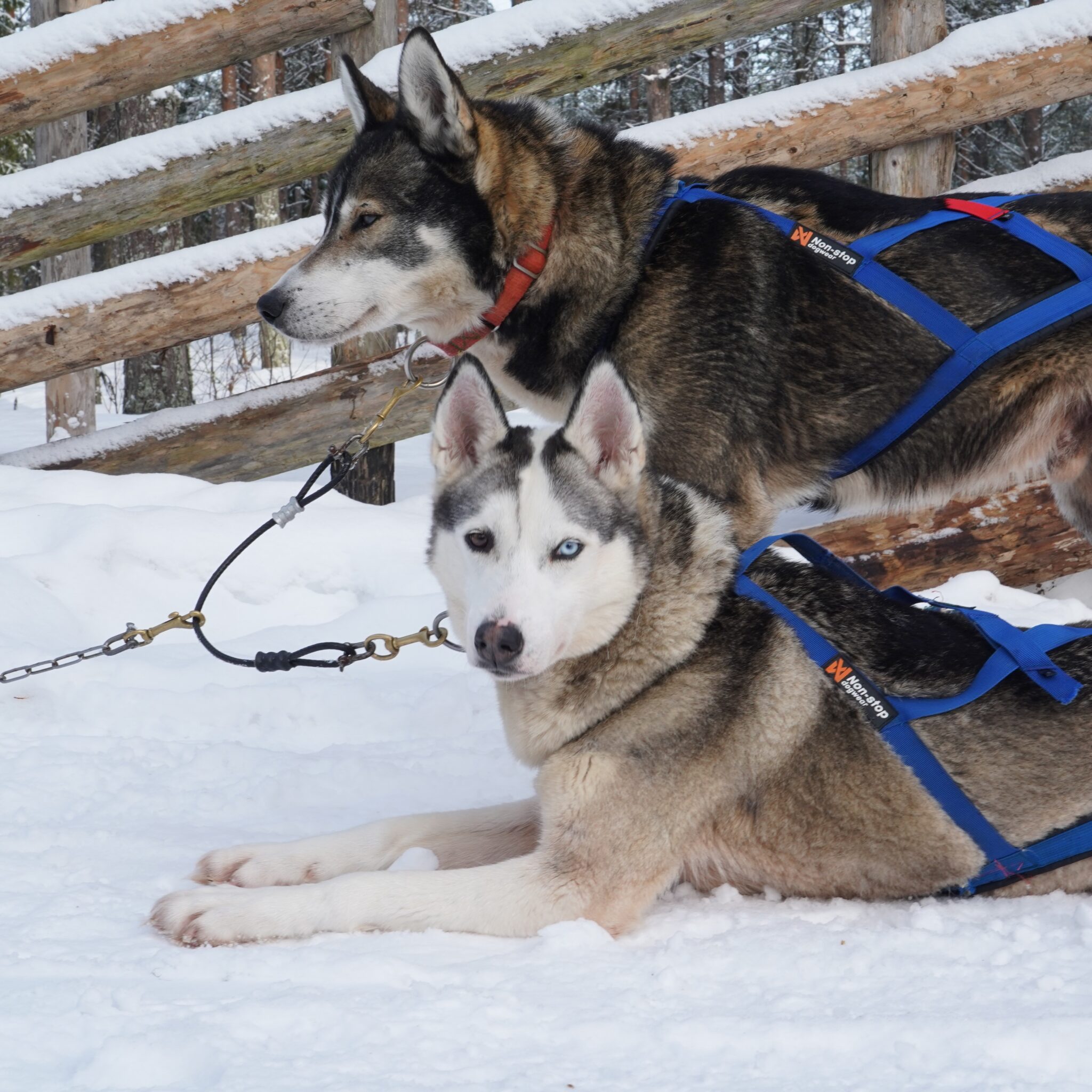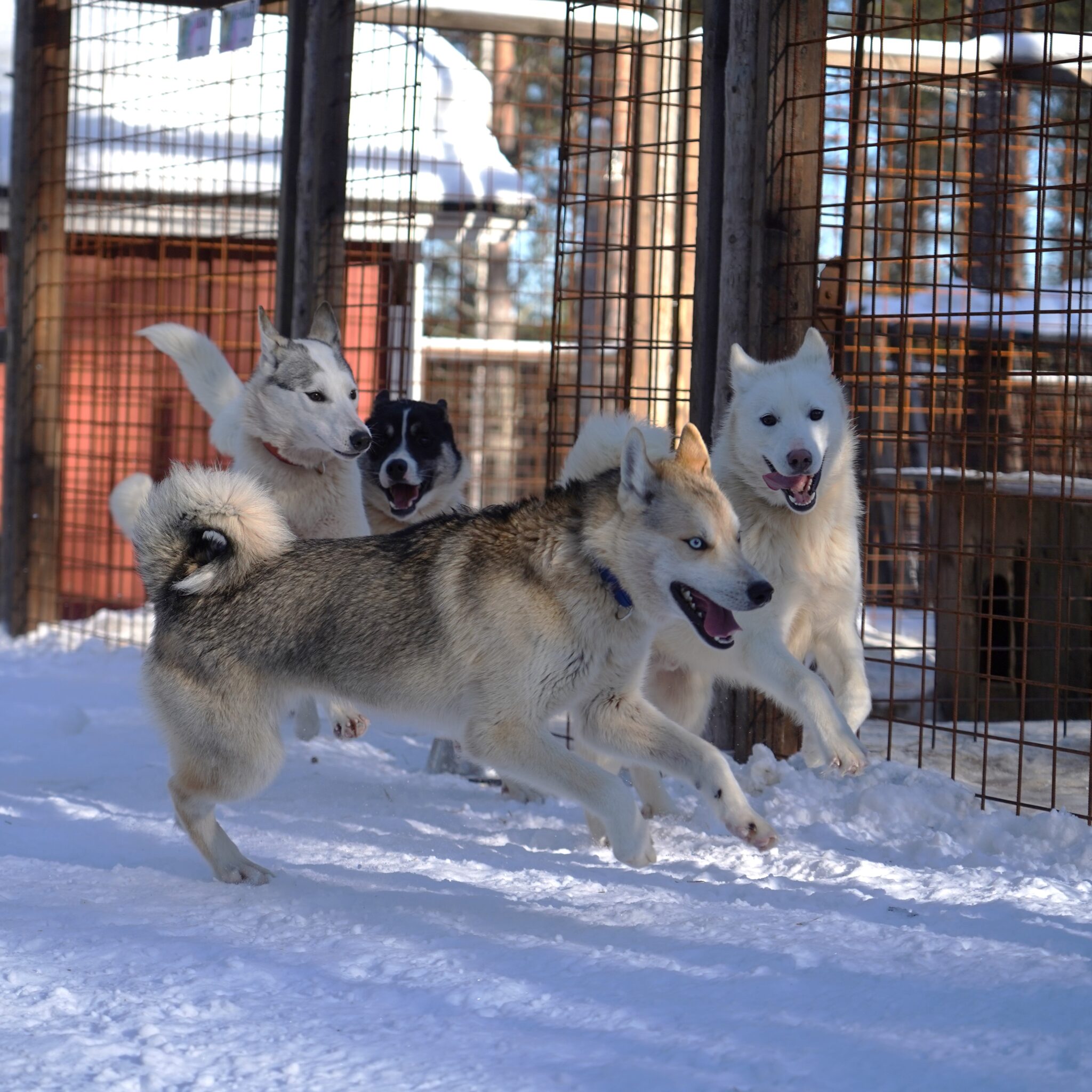 Especially for puppies it is important to get socialization time in the play area. Even though they are born to run, it takes a lot of preparation and work until they are ready to become sled dogs. At first, they enjoy lots of play and cuddle time in the play area with our Guides and Guests. Ones they are bigger, walks on a collar and harness are done to get them used to the feeling and to let them explore the area. Around the time when our puppies turn 1 year old, they join their first Guides-only fun runs with the sleds. And only when they are 1,5 years old, they start running with the adult dogs.