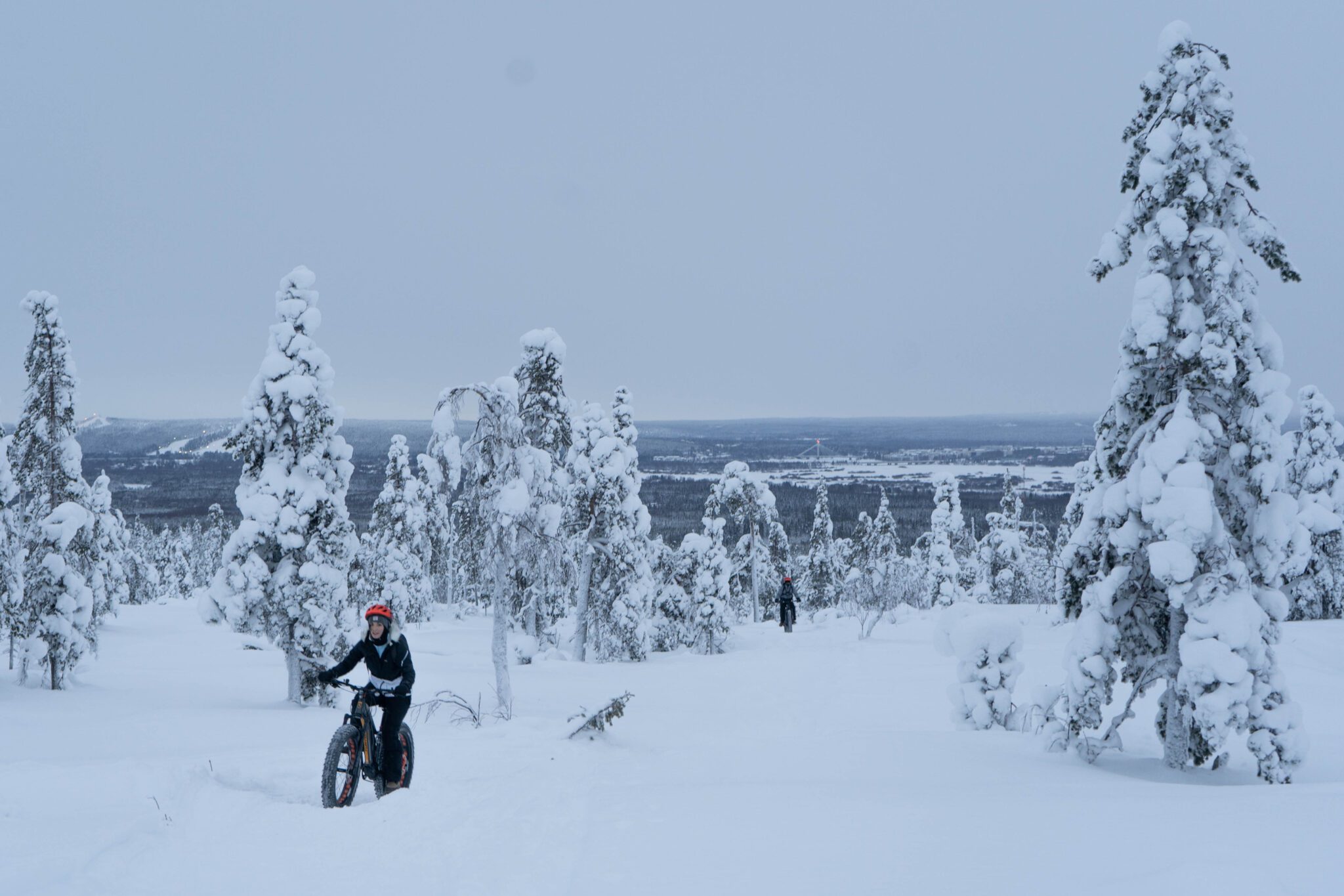 Your guide will lead you from Rovaniemi city centre on a scenic itinerary. The tour is always private, allowing your guide to take the time and adapt the tour, based on your level and condition. The chosen route is designed to let you first get familiar with your fatbike on easy cycling paths before entering forests roads and/or reaching hilltops. A cultural tour of the different points of interests of the city and Santa Claus Village is also possible for those who are willing to go on an easy ride without too many challenges. In all cases, you may discuss the best itinerary options for your group.