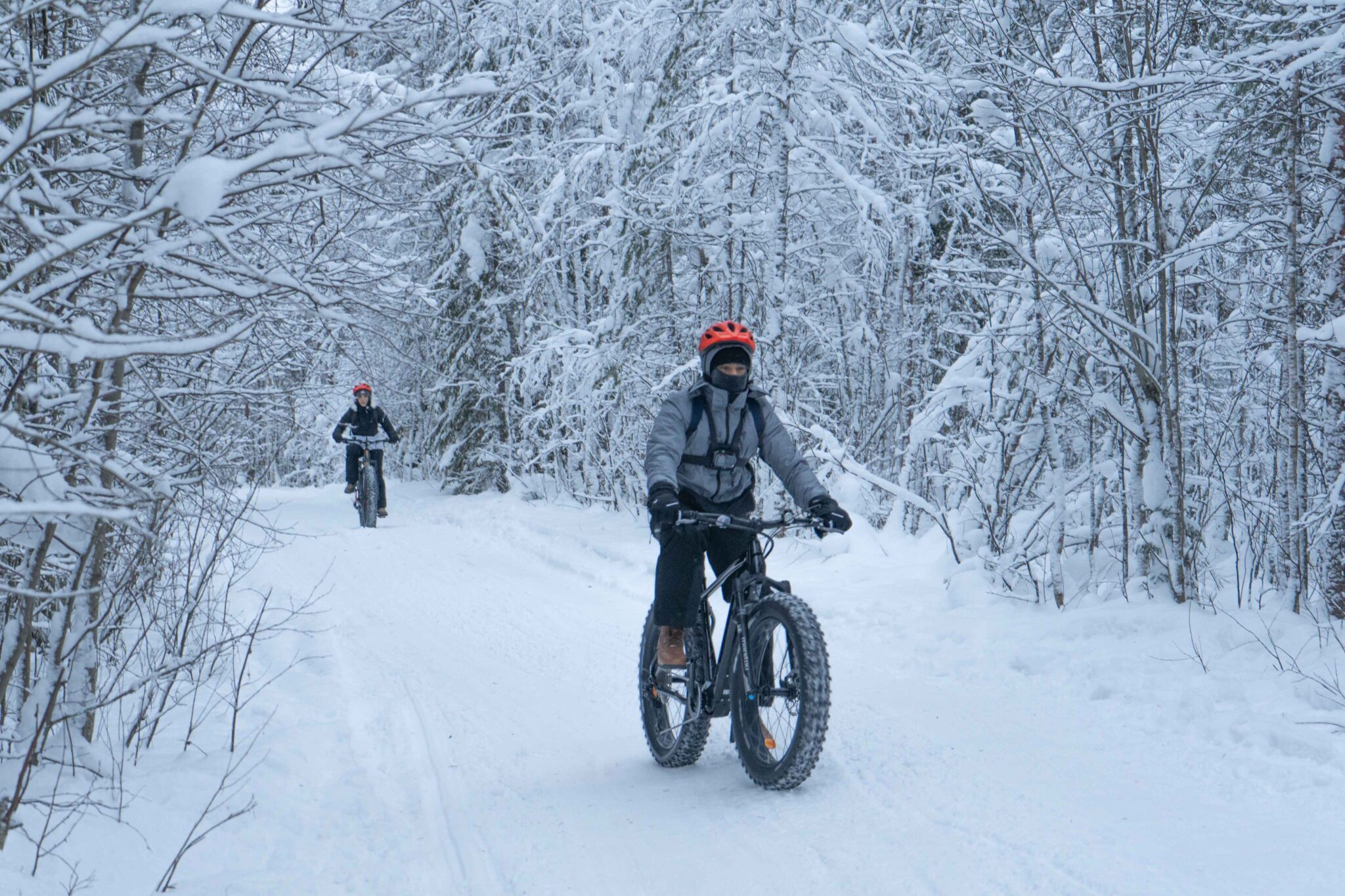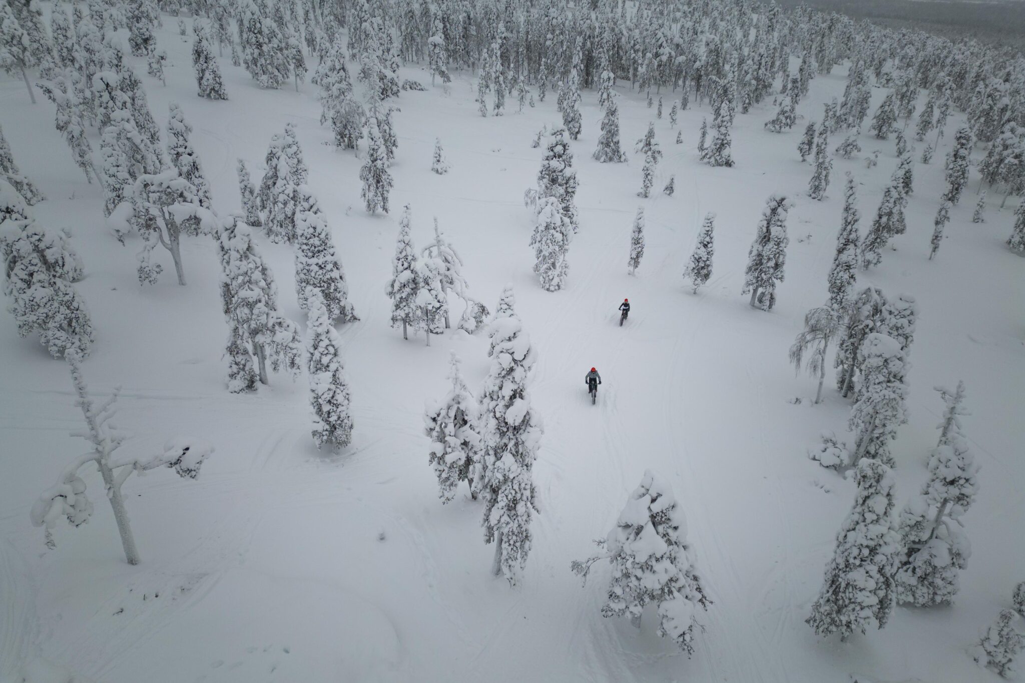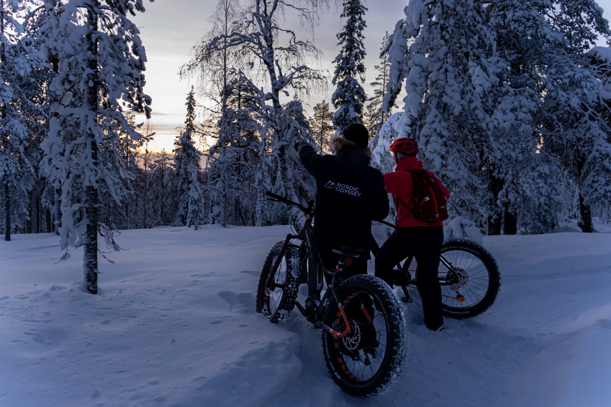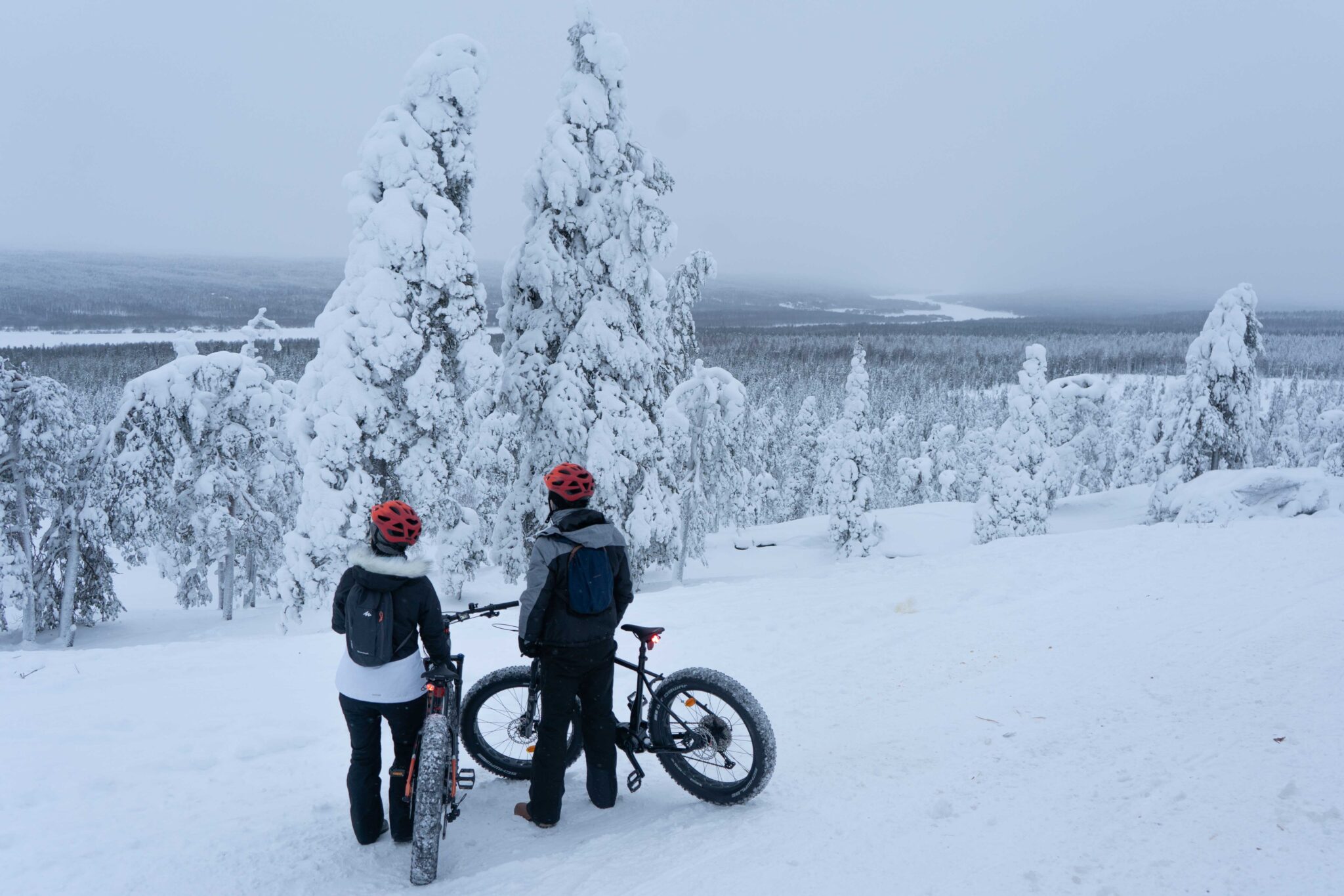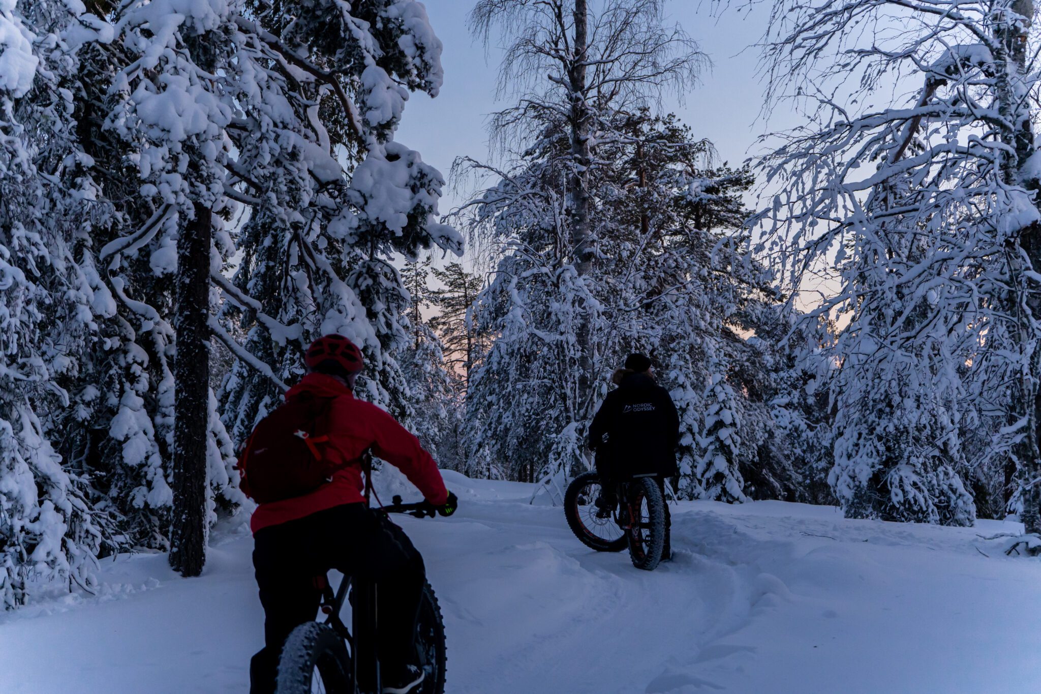 The fat tires of your bikes allow you to ride on every kind of terrain : city roads, rocky paths, forests, sand and even snow! This is the perfect way to explore Lapland all year round, including Winter!