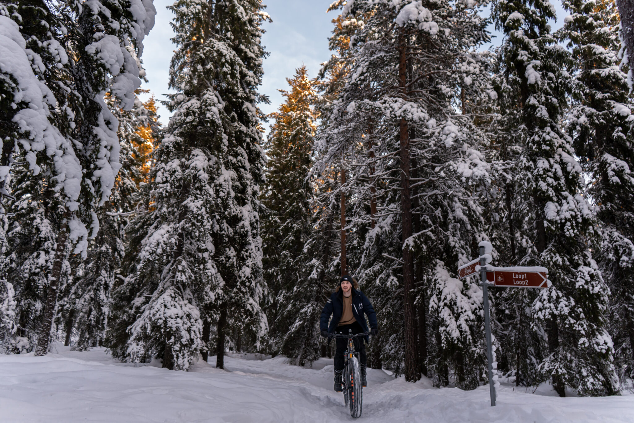 No problem! You may rent the electric fatbikes from us, reserve them in our online rental shop (link here) and collect them in our office in city centre. The bikes and equipment will be prepared and ready for you. Our team will also provide you with explanation how to safely use the bikes and the different itineraries you may take (you may also check our blogpost here). For families who would like to cycle around Rovaniemi, or to Santa Claus Village (8km from the city), we also rent a cart for young children (less than 22kg) that can easily adapt to the back wheel of the e-fatbike.
