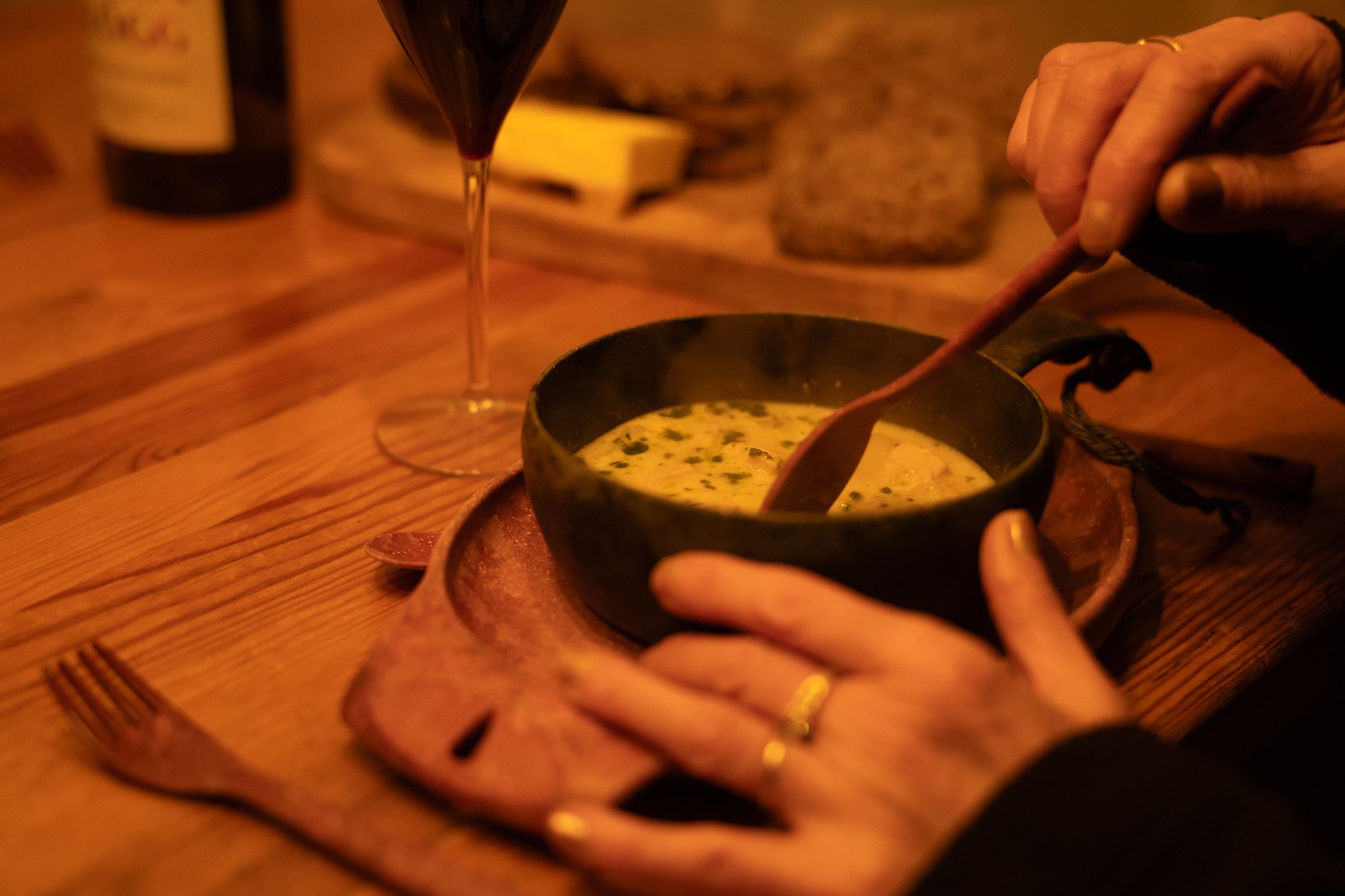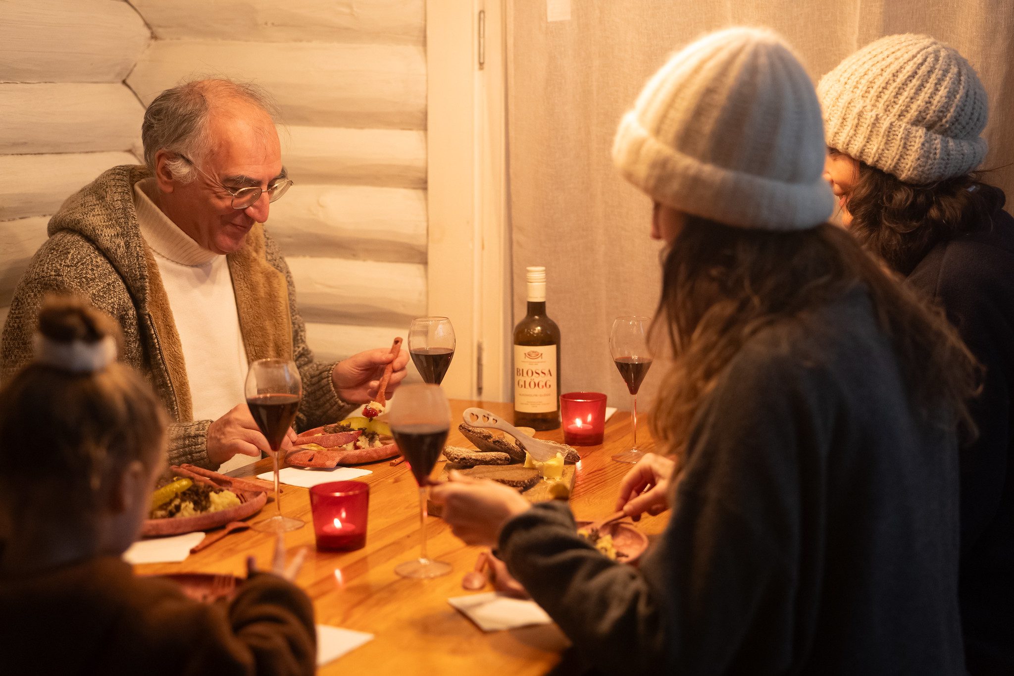 While you enjoy your sauna experience, your guide will begin preparing a hearty dinner served in the wooden cottage: a delicious Finnish soup, accompanied by warm drinks and sweet pastries as a dessert.