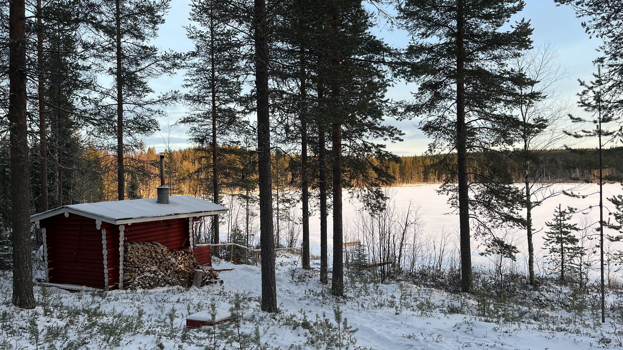 After the snowshoeing adventure, your guide will take you into deep forests to a wilderness cabin with a log sauna. The traditional cabin has no electricity or running water ; the lake and nature around is providing everything it needs! The place if beautiful and extremely peaceful – perfect for a relaxing moment!